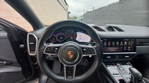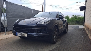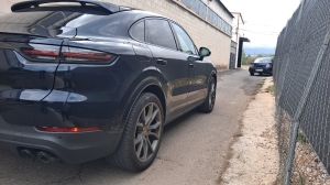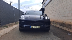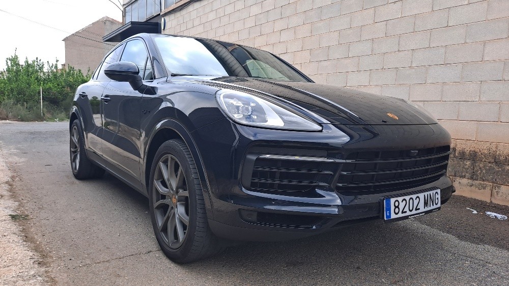 Estupendo Porsche Cayenne Con Logo PORSCHE pintado en negro mate y designación del modelo en negro mate,? Suspensión neumática adaptativa con sistema de nivelación y ajuste de altura, incluyendo Porsche Active Suspensión Management (PASM)? Tuberías de escape deportivas en negr? Llantas Exclusive Design de 21 pulgadas en Satin Platinum, incluidas las extensiones de los pasos de rueda en el color exterior? Paquete de memoria para el conductor? Iluminación ambiental? Sistema de asientos traseros 2+1? Asientos calefactables (delanteros)? Volante calefactable? Alfombrillas? Persianas enrollables eléctricas para las ventanas laterales traseras? Compartimento para smartphone con carga inalámbrica? Cargador de a bordo de 7,2 kW (AC) y cargador móvil de 7,2 kW? Cable de conexión entre la unidad de control y el vehículo: 7,5 m? Cable de carga pública (Modo 3)? Faros principales LED, incluyendo el Porsche Dynamic Light System (PDLS)? Espejos interior y exteriores con atenuación automática